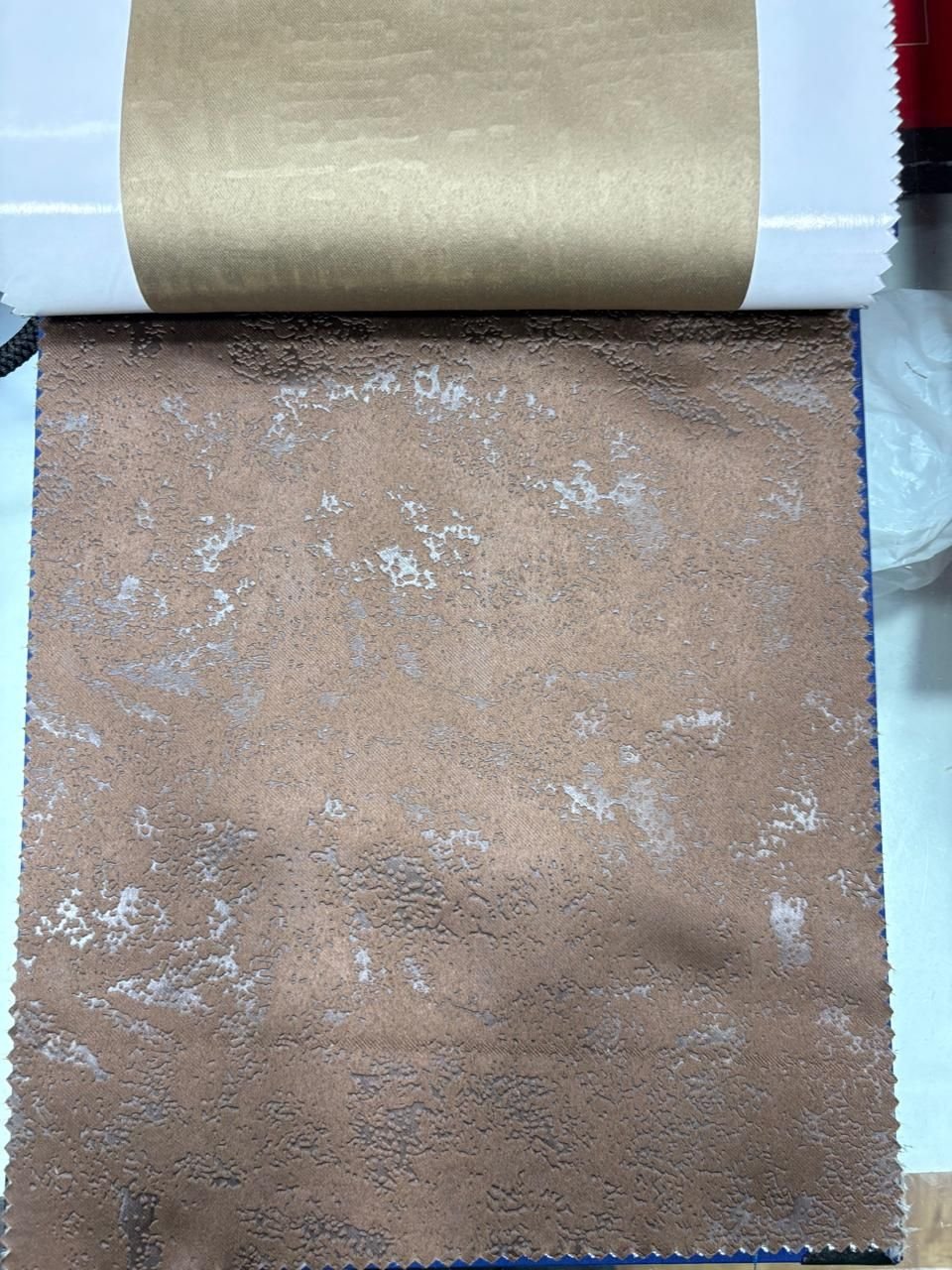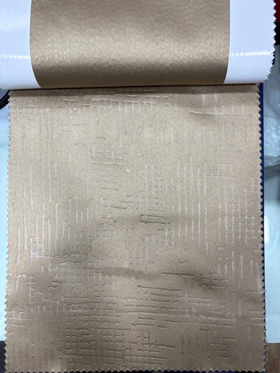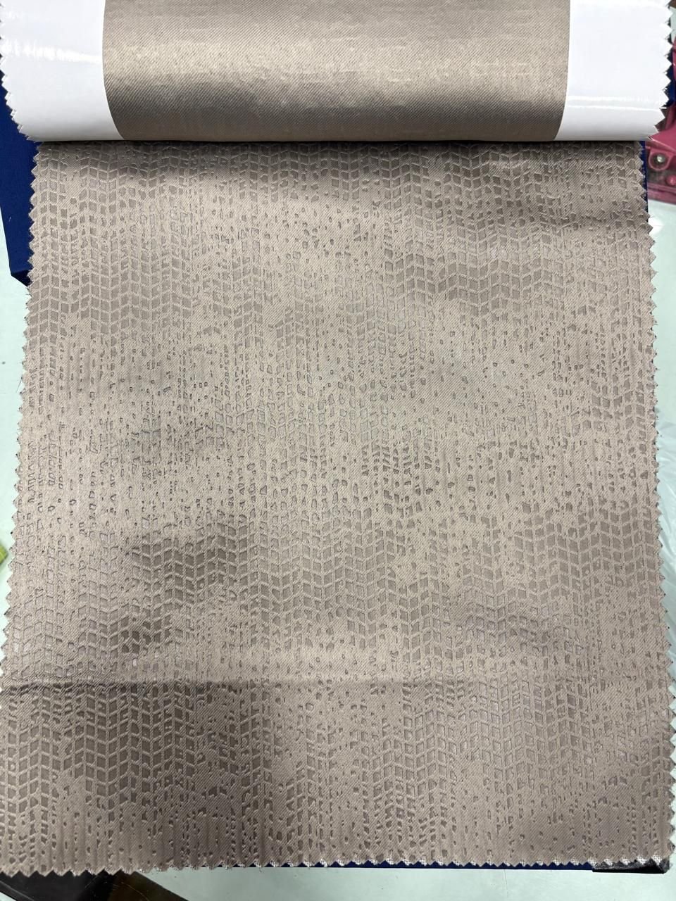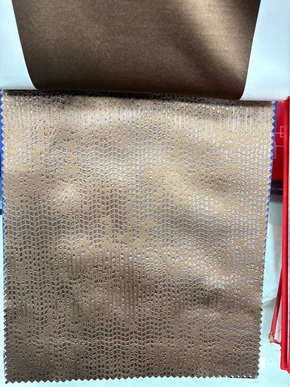 We offer high-quality Dark Brown Blackout Emboss Curtain Fabric sourced from India. This machine-made polyester fabric is perfect for making curtains, with a fabric weight of 100-180g/sqm. The dark brown color, smooth texture, and matte finish add elegance to any space. Packaged in rolls for convenience, this blackout fabric is ideal for suppliers and traders looking to provide top-notch curtain materials to their customers.