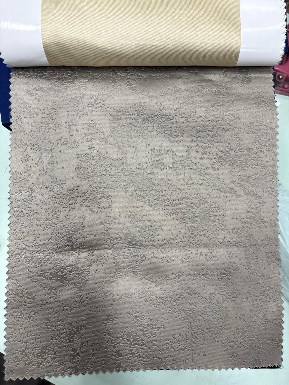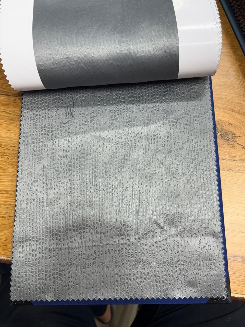 We offer high-quality Grey Blackout Emboss Curtain Fabric sourced from India. This machine-made polyester fabric weighs 100-180g/sqm, perfect for making curtains. The smooth texture and embossed pattern add a touch of elegance to any space. Ideal for suppliers and traders looking for premium curtain materials. Enhance your product offerings with this versatile and stylish fabric in a classic grey color.